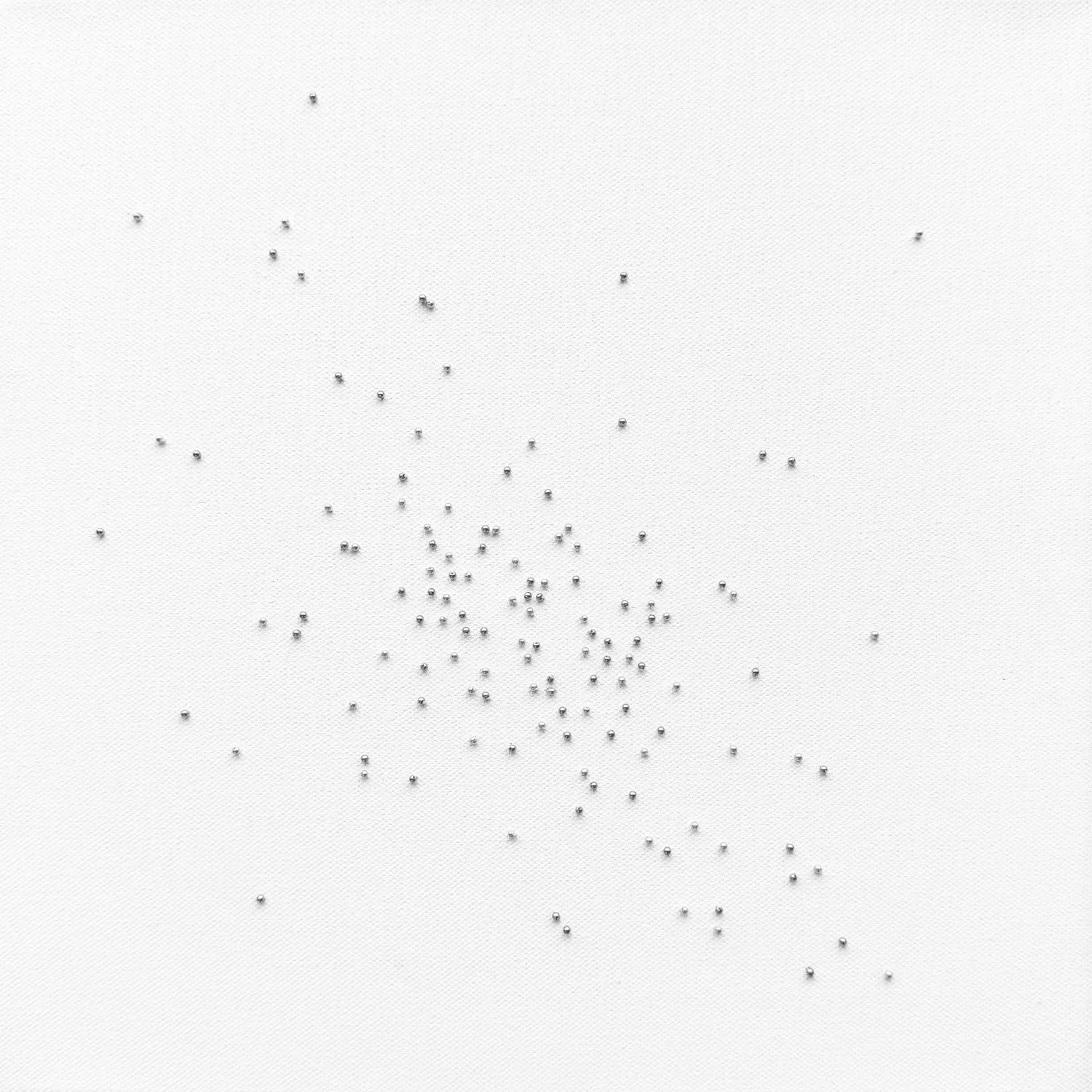 ADORN (Invisible Labor 9), 2024   Swarovoski micropearls, thread on canvas  12” x 12”