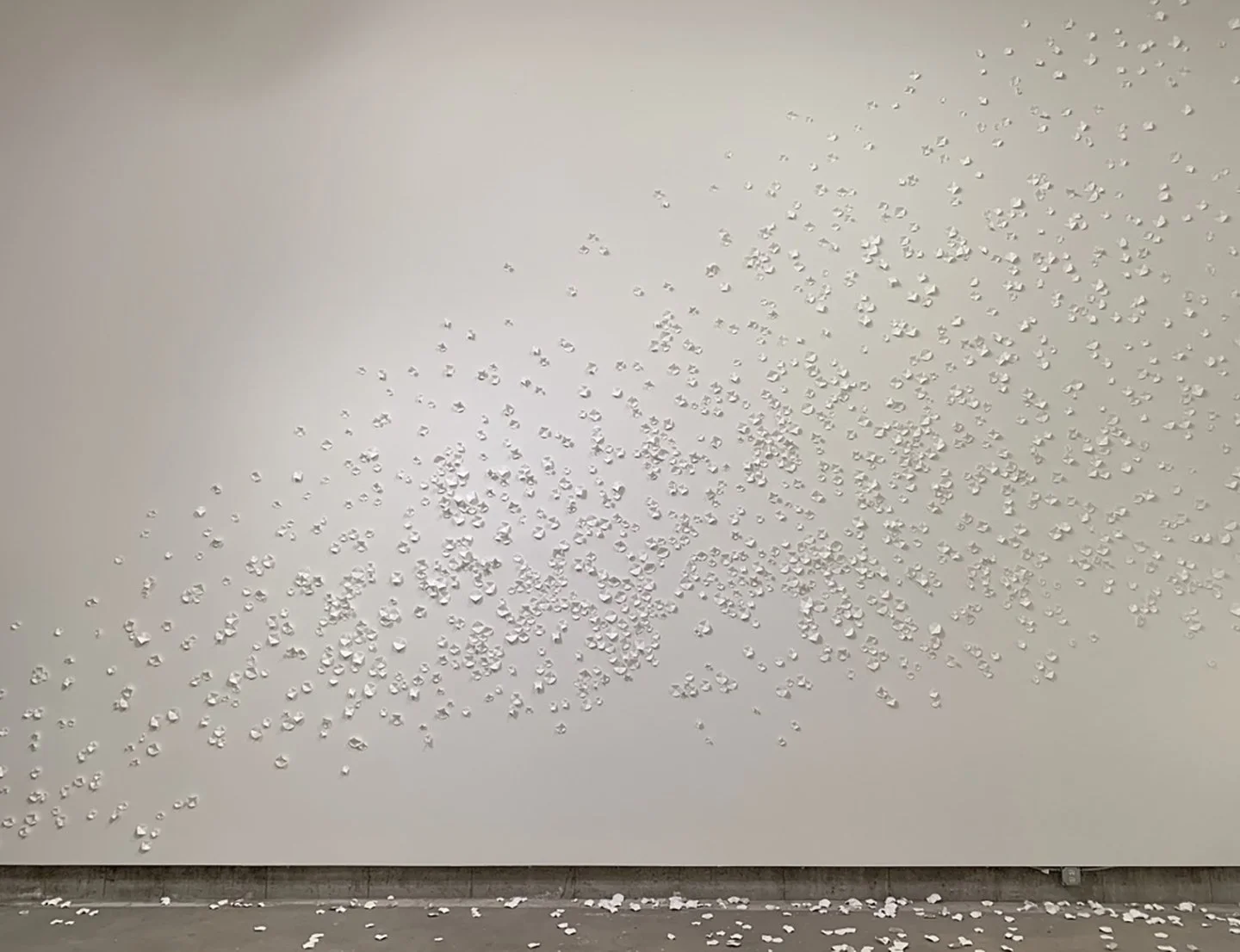 My practice has long been rooted in an awareness of space as an emotional agent, with early work focused on architecture and landscape through the lens of a camera. Over time, I began reimagining architectural structures in new media, starting with paper. Origami-like shapes emerged, guided by the visual language of walls, edges, and corners. I made hundreds, then thousands. Assembled together, these interpretations of space gradually shifted from geometric to organic, and continue to resonate throughout my work in sculpture, print, and installation.