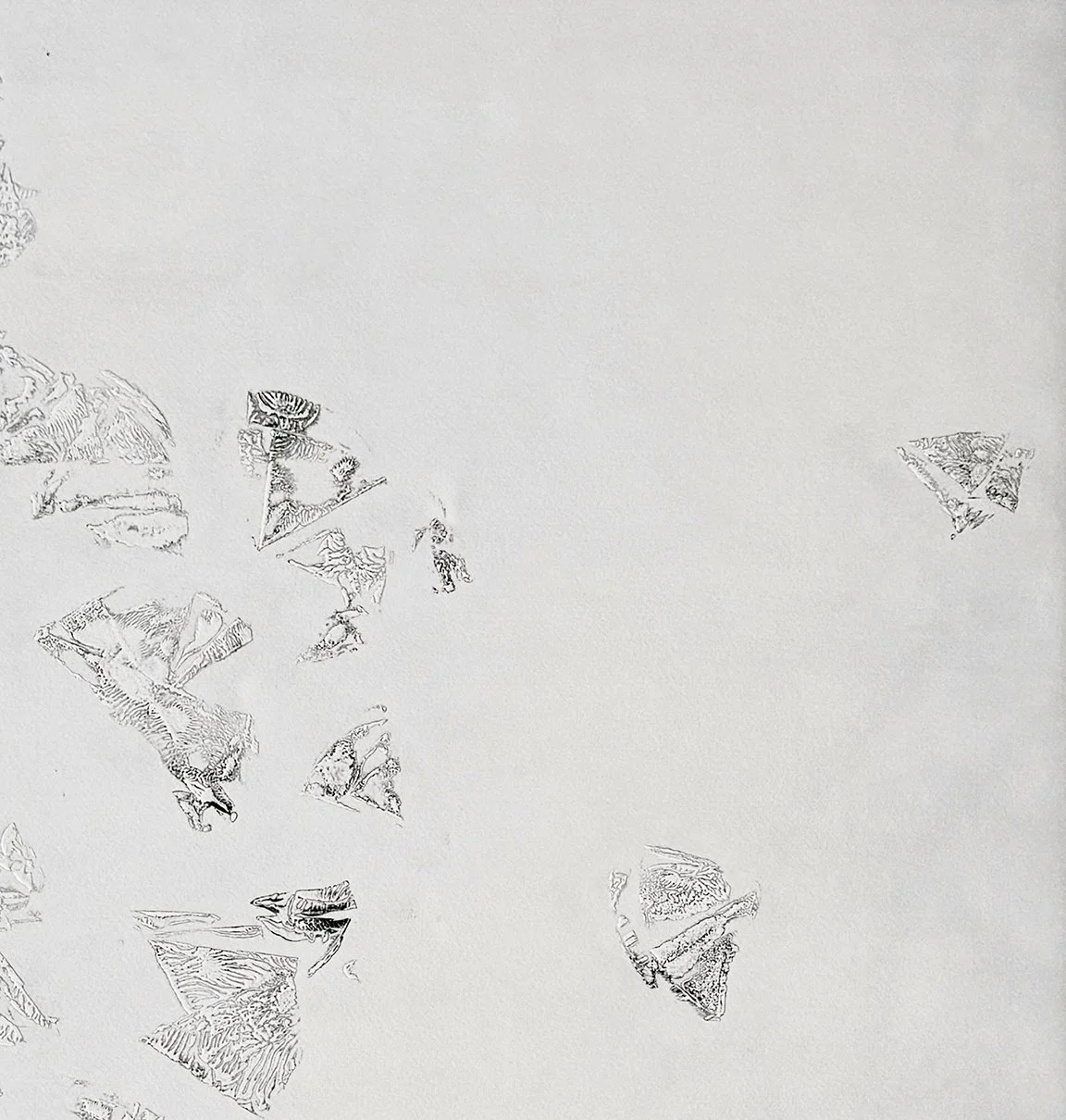 © Linda Pagani, Traces (fleeting), n.1, 2024, monoprint, embossment on paper